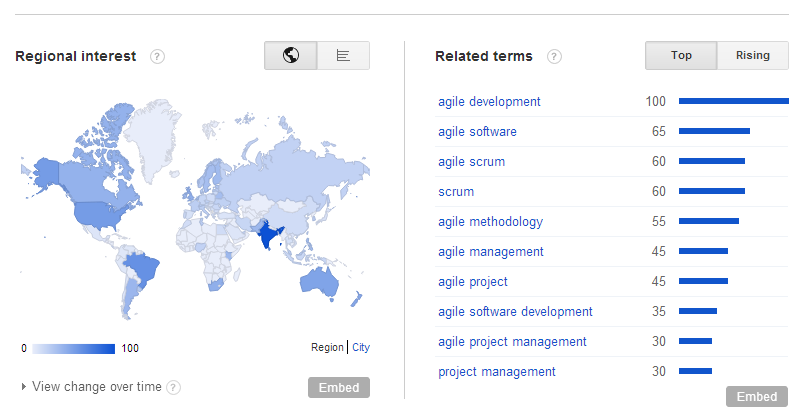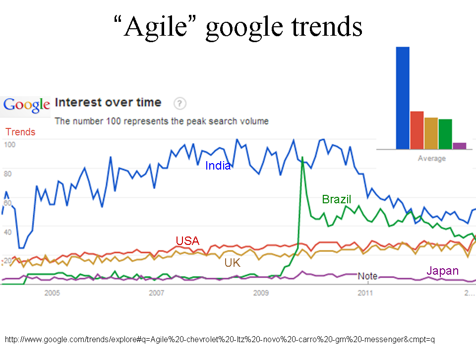 - Google only shows the trend after 2004, but I suspect there was an Agile breakout in India(like Brazil) before then, around 2003.