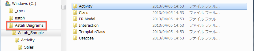 Each diagram will be stored under the packages which will be automatically created where the diagrams belong to accordingly. See the tree structure of this .asta file in the right figure, for example, an image of Activity Diagram will be exported under the [Activity] folder.