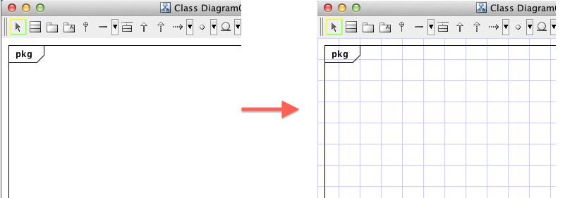 Astah has several features that help creating clean diagrams. Alignment Guide is one for better positioning of model elements, [Alignment] Menu (Align horizontally and vertically) would help aligning specific multiple model elements. And another one is a Grid. By default, grid lines are invisible, so some may not know that you could use it in Astah. Here’s how to show grid and capabilities of what you can do with them.