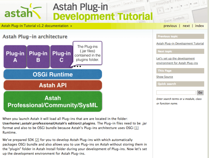 Needless to say, we have laid out the architecture for you to easily develop Plugins to extend its functionalities to achieve your specific needs. Plug-in development tutorial and Astah Plug-in SDK will help you get started on your plug-in development.