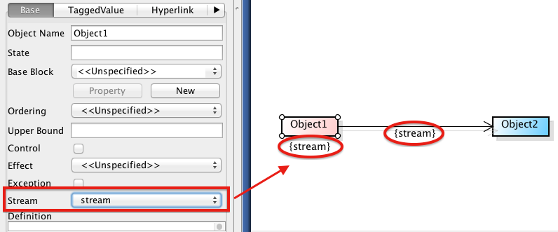 Now setting “stream” to ObjectNodes will automatically add {stream} notations on the diagram.