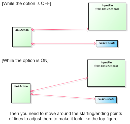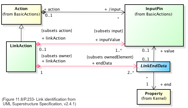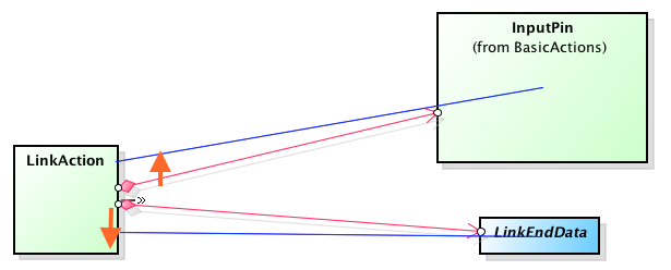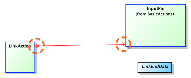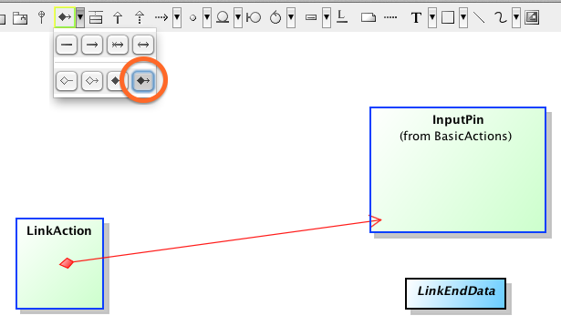 (2) Select Composition on the tool bar and click exactly where you want to start the line on the LinkAction Class and do the same on the InputPin Class