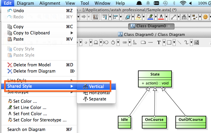 (2) Select the three lines and go to [Edit] – [Shared Style] – [Vertical] from Main Menu.