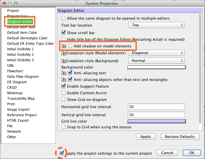 (1) Go to [Tool] – [System Properties] and select [Diagram Editor] from the left menu