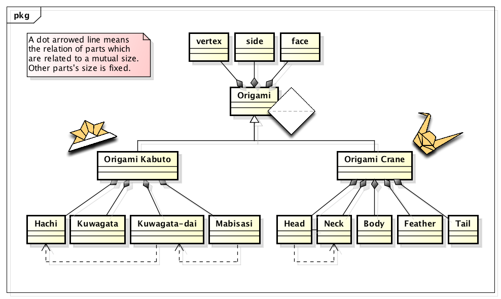 The first step I did was to model the structure of Origami Kabuto (Figure.2) using UML.