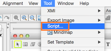 (3) Launch Astah GSN and go to [Tool] – [Script]. (To add this menu, you need to install Script plug-in first.)