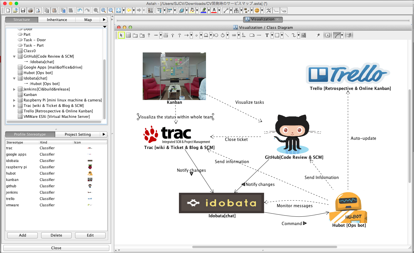 For people who doesn’t know about us, Change Vision, Inc. or Astah, we develop “Astah“, a Java-based modeling tool with several editions (UML, SysML and Goal Structuring Notation..etc.); this tool is used by companies around the world and dev teams are based in Tokyo and Fukui offices in Japan. So we need a system that helps us collaborate between our two offices.