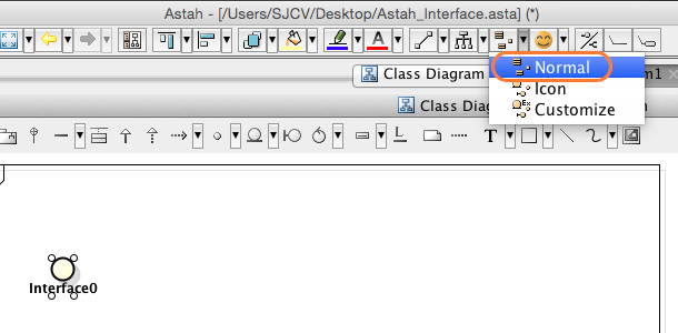 Astah_Interface_icon_presentation2 May 1, 2015 How to create Interfaces in rectangle shape 610 × 300 Click [Normal Icon] on the top menu