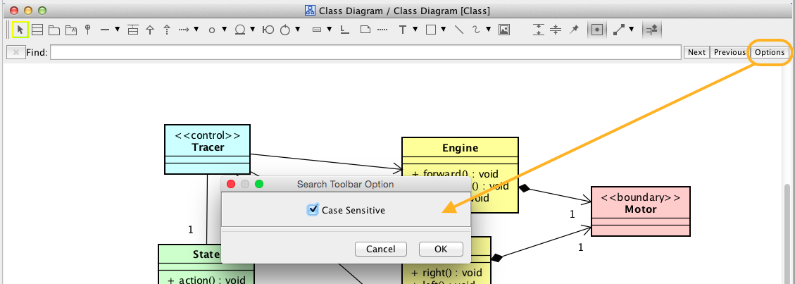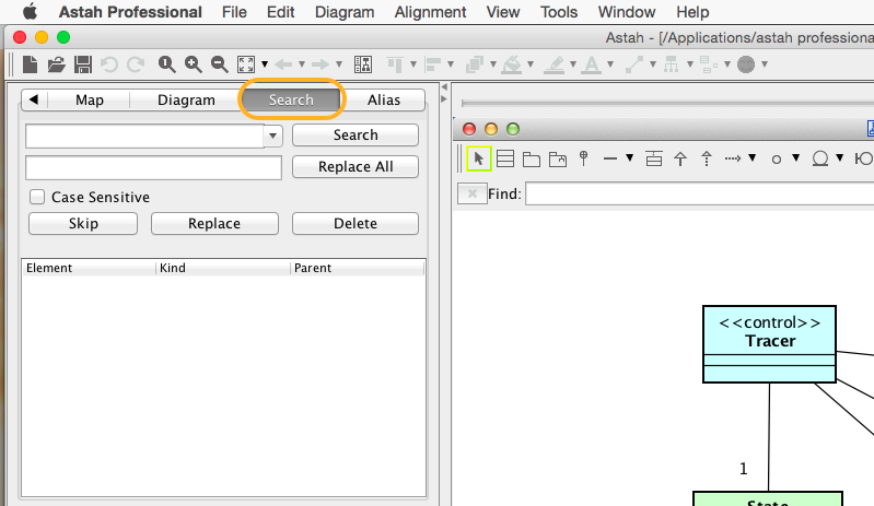 There are two ways to “search” models in Astah.