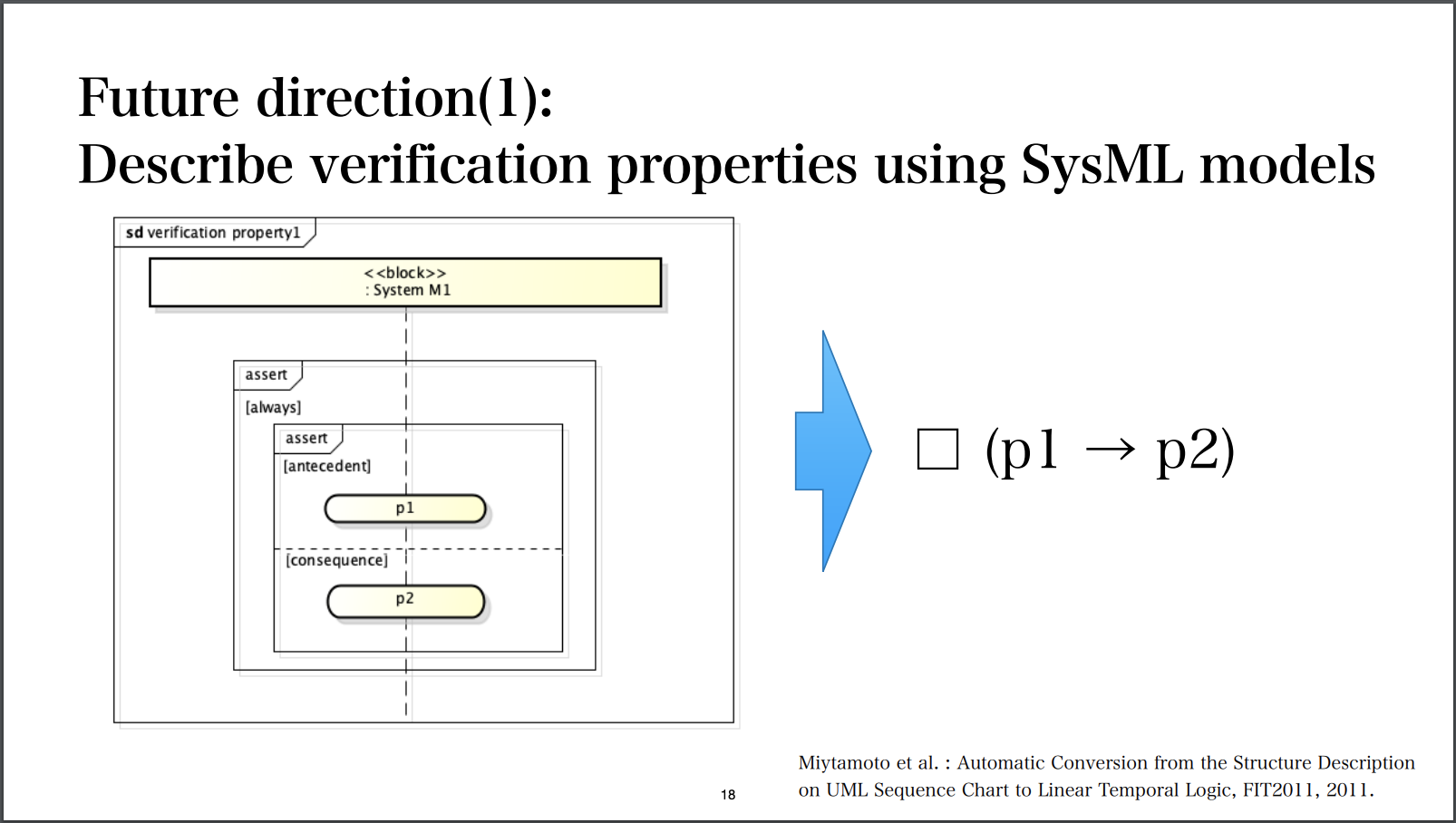 He summarized the studies and shared the following four future directions that the collaboration of model-checking/simulation for MBSE should drive to: