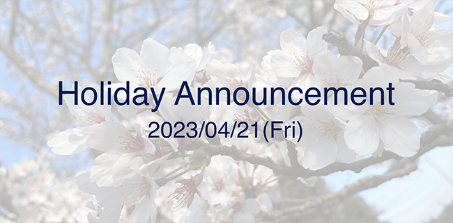 Due to our annual internal events, we’ll be closing our office on April 21st (Fri) in Japanese Standard Time.
