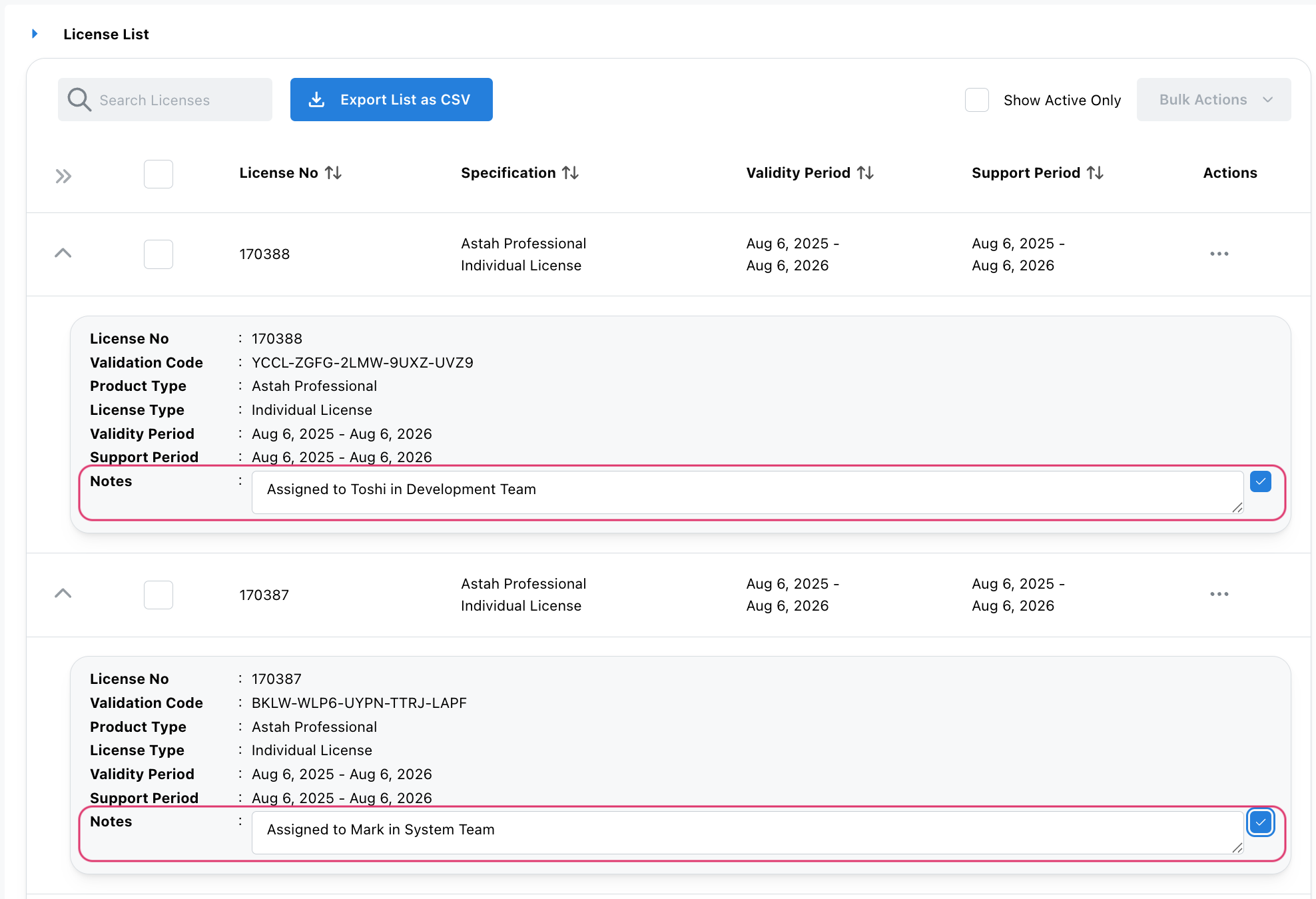 We’re excited to introduce a new feature in the Astah license management portal that lets you add internal notes to each license.