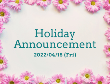 Due to our annual internal events, we’ll be closing our office on April 15th(Fri) in Japanese Time.