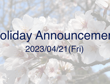 Due to our annual internal events, we’ll be closing our office on April 21st(Fri) in Japanese Time.