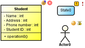 In Astah, you can add mini-icons to each model to make your diagrams expressive and alive! When you want to add information to a model, you would add text or notes or change its color. In Astah “Mini-icon” is another option. You can add a smily face, check mark, stars…! Your diagrams will become communicative and the model element can impart the information just by adding a Mini-icon.