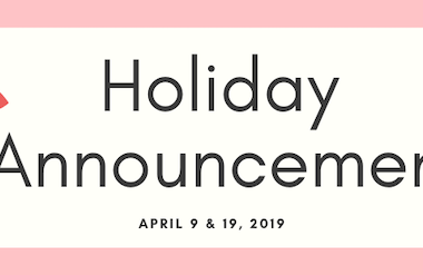 Due to our annual internal events, we’ll be closing our office on April 9th(Tue) and 19th(Fri) in Japanese Time.