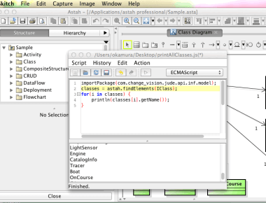 “Script Plug-in” is the easiest way to add customized features to Astah for your specific needs. Here’s a way to run your existing scripts on Astah version 7.0